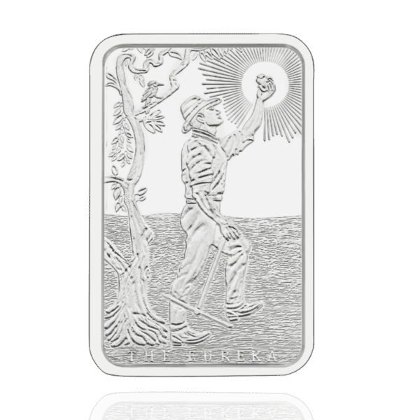 Set against an Australian backdrop, the range captures the spirit of a definitive moment in Australian gold mining history, The Eureka Rebellion. This 500g silver minted bar depicts a Digger standing proud on his tenement, displaying his newly discovered gold nugget against a blazing Australian sun.