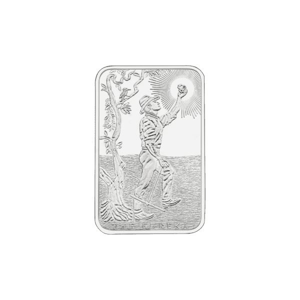 Set against an Australian backdrop, the range captures the spirit of a definitive moment in Australian gold mining history, The Eureka Rebellion. This 5oz silver minted bar depicts a Digger standing proud on his tenement, displaying his newly discovered gold nugget against a blazing Australian sun.